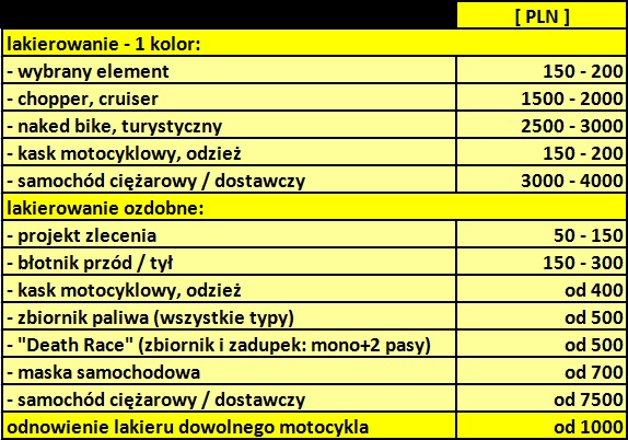 Oferuję malowanie jednokolorowe oraz ozdobne motocykli, samochodów, kasków, akcesorii oraz wykonuję zlecenia indywidualne na usługi lakiernicze
